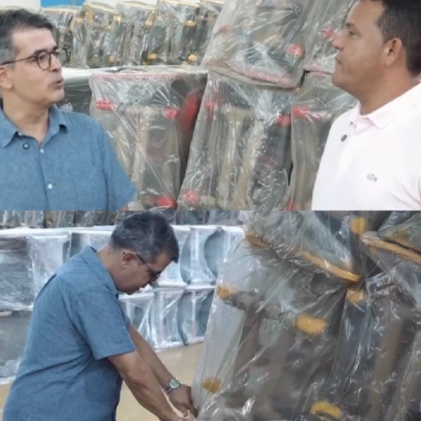 No ginásio municipal, o prefeito Hélio Willamy e o secretário de Educação, professor Renato Dantas, acompanharam de perto a chegada do material e ressaltaram a importância do investimento para o cotidiano escolar.