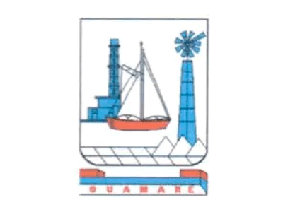 De acordo com a LEI No 638/2014, o Brasão de Armas é composto por um escudo de estilo francês moderno, 8 X 7 módulos, simbolizando as principais atividades econômicas da história de nossa terra. No campo ou topografia do brasão, os símbolos que caracterizam as atividades petrolíferas na região gerando renda e projetando o desenvolvimento do município, assim como um barco a vela representando a atividade pesqueira que tanto orgulha e dignifica os cidadãos de nosso município nos seus mais diversos aspectos: econômicos e socioculturais. Na sua base inferior, as pirâmides de sal - destacando a indústria salineira, outra fonte econômica municipal. Abaixo do escudo encontra-se uma divisa com o dizer GUAMARÉ, escrito em cor preta sobre fundo de cor ciano, que vem das palavras água e maré, nome que teve origem na situação geográfica do lugar, banhado pelas águas do Oceano Atlântico, pelas marés e os rios: Aratuá e Miassaba.